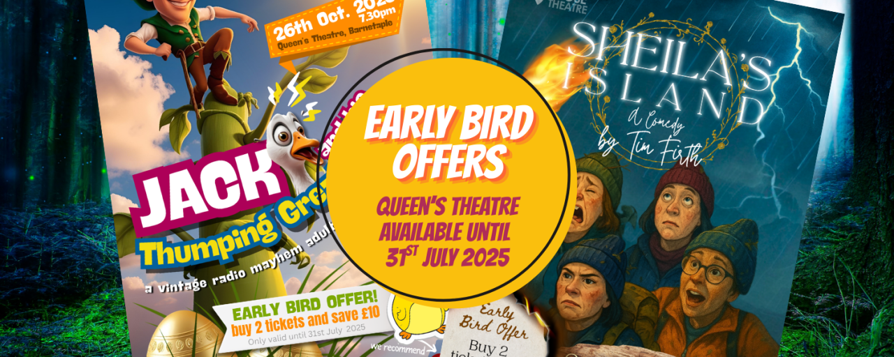 Love a laugh? Crave a deal? You're in luck! Our Early Bird Offers are here β but only until 31st July 2025 β so grab your tickets now and save a tenner when you book two seats for either of these fantastic upcoming shows at Queen's Theatre, Barnstaple: